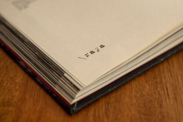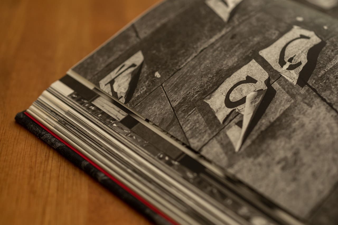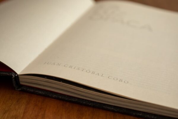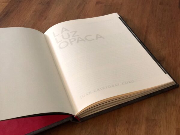 Tapa dura con impresión en screen sobre tela y título repujado.