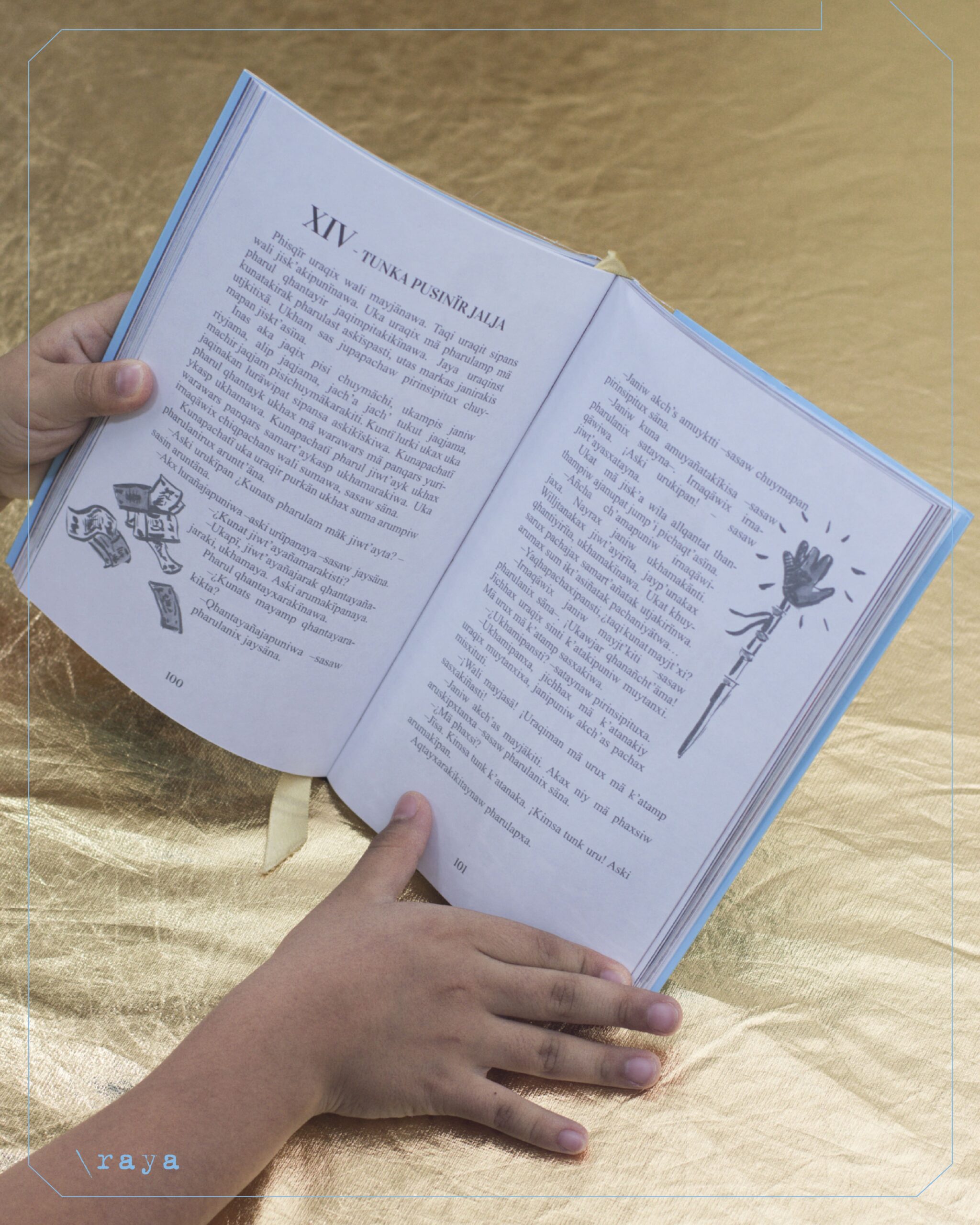 Publicado por️ Raya Editorial; fotografías e ilustraciones por River Claure; edición por Santiago Escobar-Jaramillo; diseño por Santiago Aguirre Vélez y Santiago Escobar-Jaramillo; traducción a lengua aymara por Rubén Hilari y Martín Canaviri.